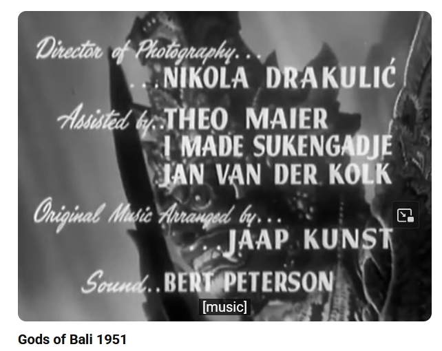 Maandag 19 mei 2025 kreeg ik een emailtje uit Amerika: “The documentary Gods of Bali (1951)“. De Engelse versie van ‘Bali. Eiland der goden’ van Drakulic uit 1951.