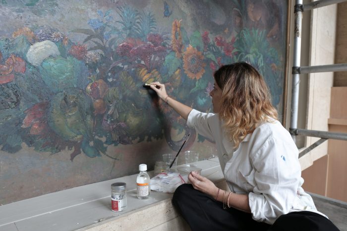 […] As an act of preserving cultural heritage, this 4 metres x 10.85 metres painting and one of the world’s largest paintings, consists of three rather curved panels depicting the rich flora and fauna in Indonesia. […] The physical condition of the “Margasatwa dan Puspita Indonesia” painting was affected after Hotel Indonesia underwent several renovations until finally, Hotel Indonesia decided to restore the painting through a professional painting restoration process. Therefore, Italian restorer who opened a restoration studio in Indonesia named Michaela Anselmini has taken the task of conserving and restoring this masterpiece painting by working very carefully and not changing the original work.’ 1
